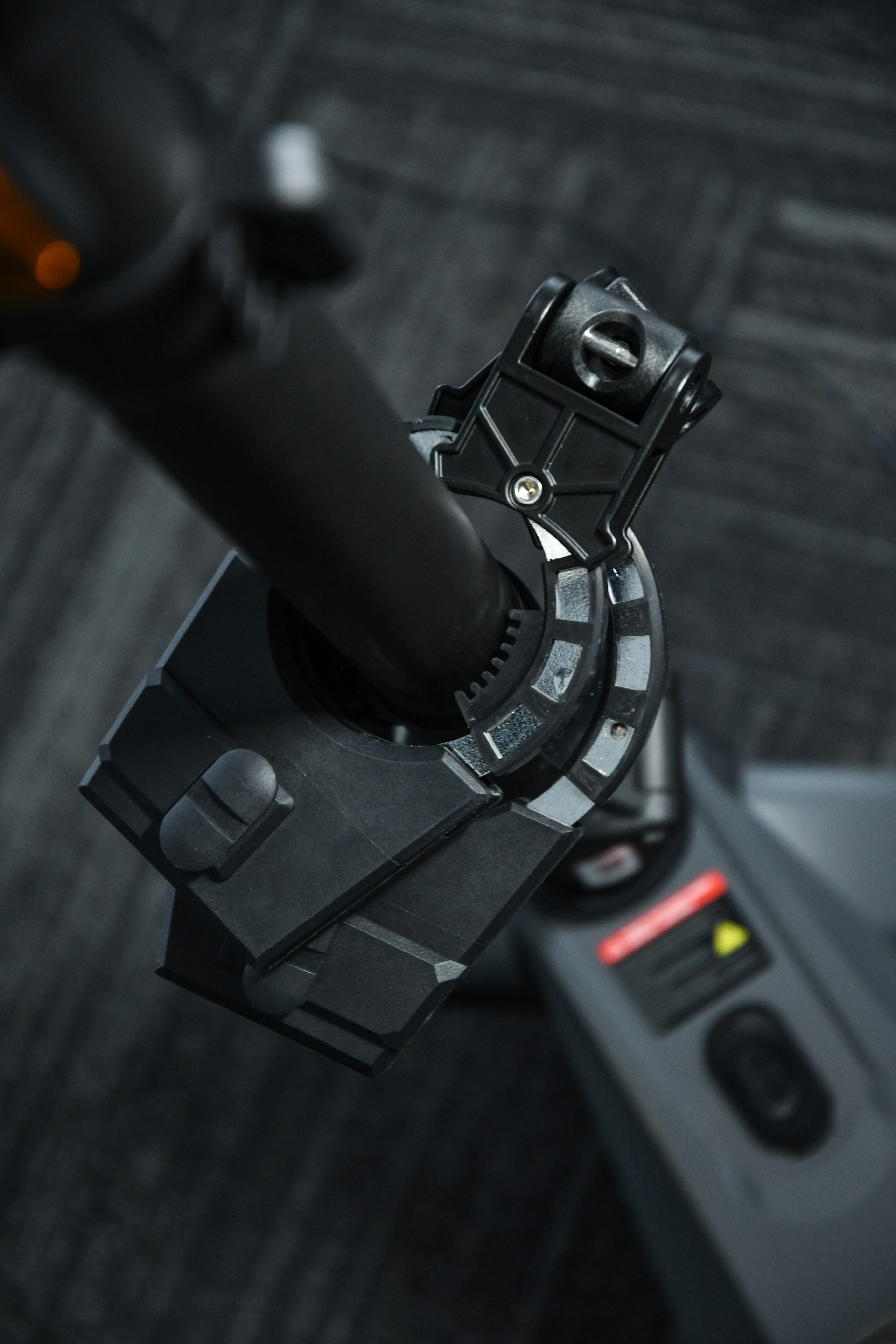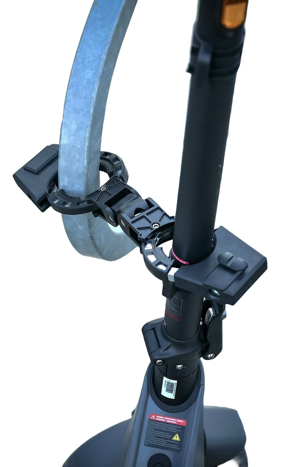 The E-Cuffs lock includes a custom-designed mount that securely attaches to the scooter’s stem using a simple zip-tie method—no tools or bulky accessories required. Unlike traditional U-lock mounts or external bags, it doesn’t shift the scooter’s center of gravity, ensuring a safer and more balanced ride while offering convenient, bag-free transport.